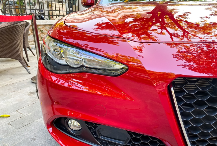 Ngoại thất xe có màu đỏ Rosso Alfa đặc trưng của hãng xe Ý, kết hợp cùng mâm đa chấu kích thước 17 inch sơn bạc. Ở vị trí trung tâm đầu xe là bộ lưới tản nhiệt hình tam giác dựng đứng kết hợp cùng viền crom chữ V nổi bật. Hệ thống đèn pha halogen dạng chóa là trang bị tiêu chuẩn. Các phiên bản cao cấp hơn sẽ là loại projector kết hợp LED.