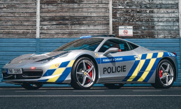 Tờ “Người bảo vệ” của Anh đưa tin, chiếc xe tuần tra mới của cảnh sát Séc là Ferrari 458 Italia đời 2011. Màu sơn xe nguyên bản là màu đỏ. Cảnh sát Séc đã sơn lại nó và bổ sung các sọc phản quang màu vàng và xanh lam, đồng thời lắp đặt một bộ đèn cảnh báo trên nóc xe.