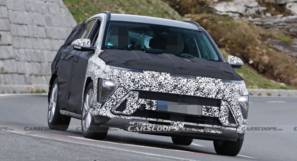 Những bức ảnh gián điệp trước đó cũng hé lộ khá nhiều thiết kế mặt trước của Kona, cũng sử dụng một thanh đèn LED trải dài toàn chiều rộng tương tự như mẫu Staria và Grandeur mới. Nhìn từ bên hông, có vẻ như Kona đời mới vẫn giữ các tỷ lệ tương tự như phiên bản tiền nhiệm, cộng với chắn bùn hình hộp đặc trưng với một số lượng lớn ốp nhựa.