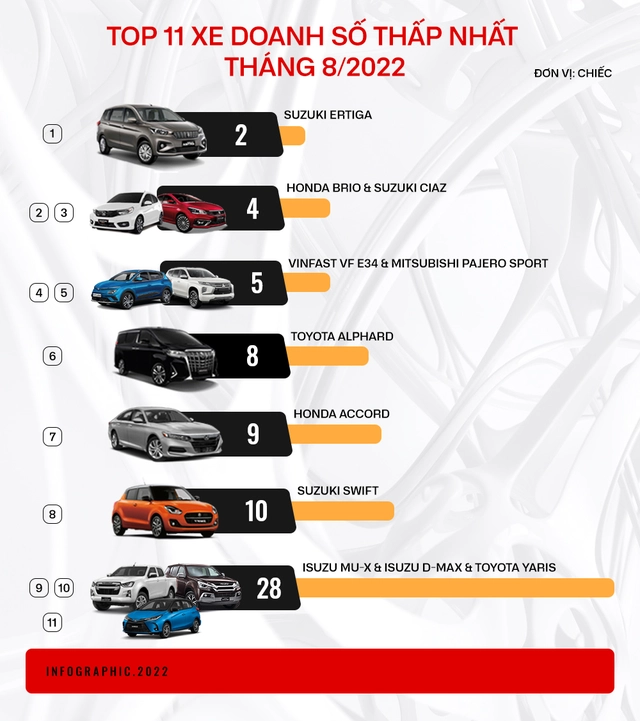Tin tức Loạt ô tô bán ít nhất tháng 8 tại Việt Nam: Hầu hết là xe Nhật, đa dạng phân khúc Posted on 14/09/2022 by viggo 14 Th9 (Tổ Quốc) – Không phải xe nào bán ít nhất cũng ‘ế’. Có những mẫu xe bị thiếu hàng do không đủ linh kiện lắp ráp. Nguồn số liệu: VAMA, VinFast Theo Tổ Quốc Cảm biến chân ga Topspeed – giải pháp tốc độ cho mọi dòng xe được phân phối bởi công ty Total. Mitsubishi Xpander phá kỷ lục doanh số tại Việt Nam trong năm, bán vượt mọi đối thủ cộng lại TOYOTA FORTUNER 2023 NÂNG CẤP TỪ 941 TRIỆU ĐỒNG, SẮP VỀ VIỆT NAM?
